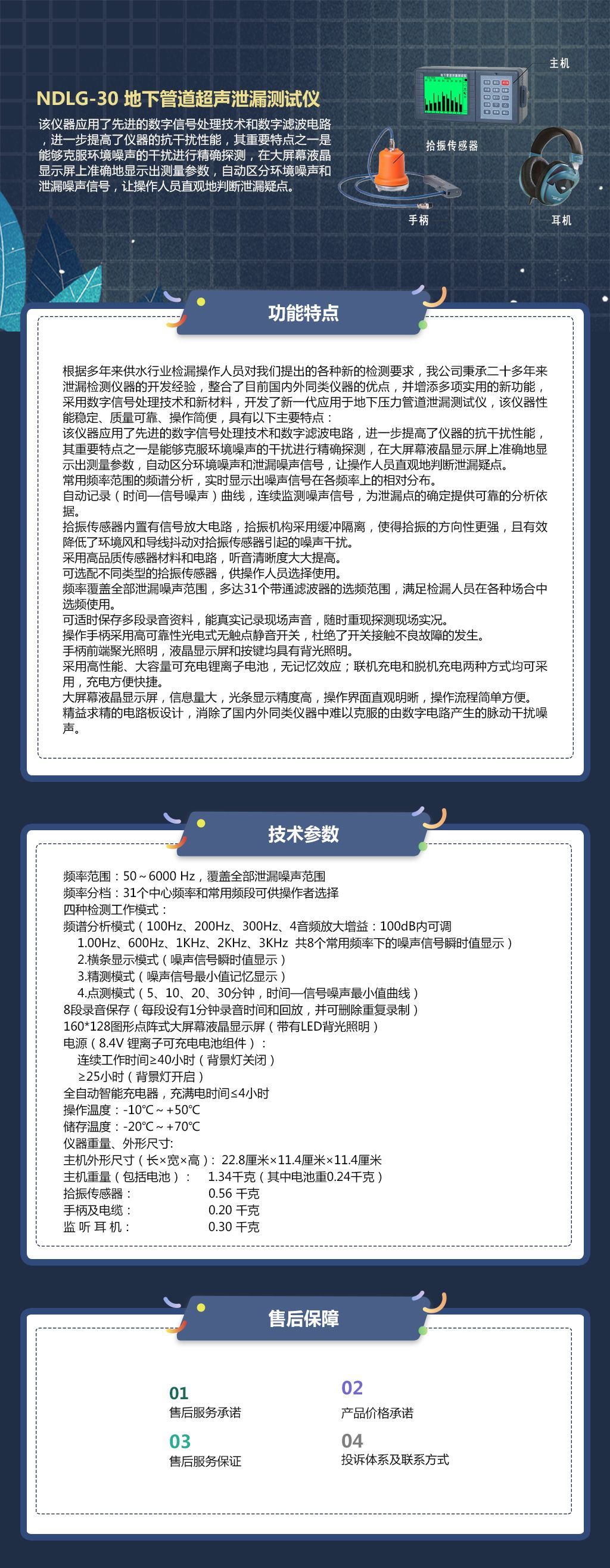 根据多年来供水行业检漏操作人员对我们提出的各种新的检测要求,我公司秉承二十多年来泄漏检测仪器的开发经验,整合了目前国内外同类仪器的优点,并增添多项实用的新功能,采用数字信号处理技术和新材料,开发了新一代应用于地下压力管道泄漏测试仪,该仪器性能稳定、质量可靠、操作简便,具有以下主要特点: