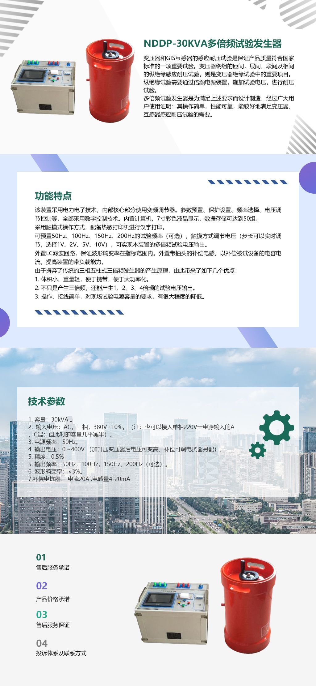 2. 不只是产生三倍频,还能产生1、2、3、4倍频的试验电压输出。