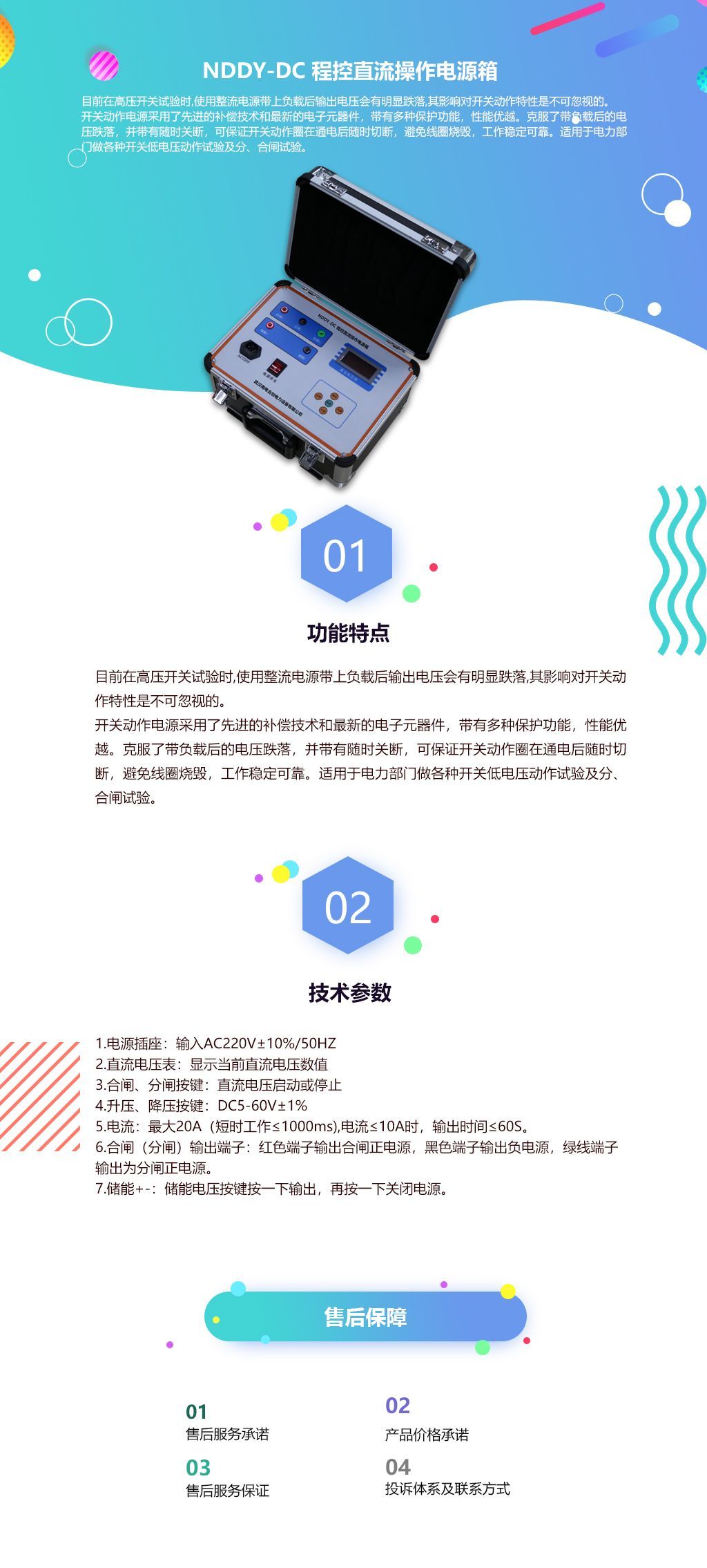 开关动作电源采用了先进的补偿技术和最新的电子元器件,带有多种保护功能,性能优越。克服了带负载后的电压跌落,并带有随时关断,可保证开关动作圈在通电后随时切断,避免线圈烧毁,工作稳定可靠。适用于电力部门做各种开关低电压动作试验及分、合闸试验。