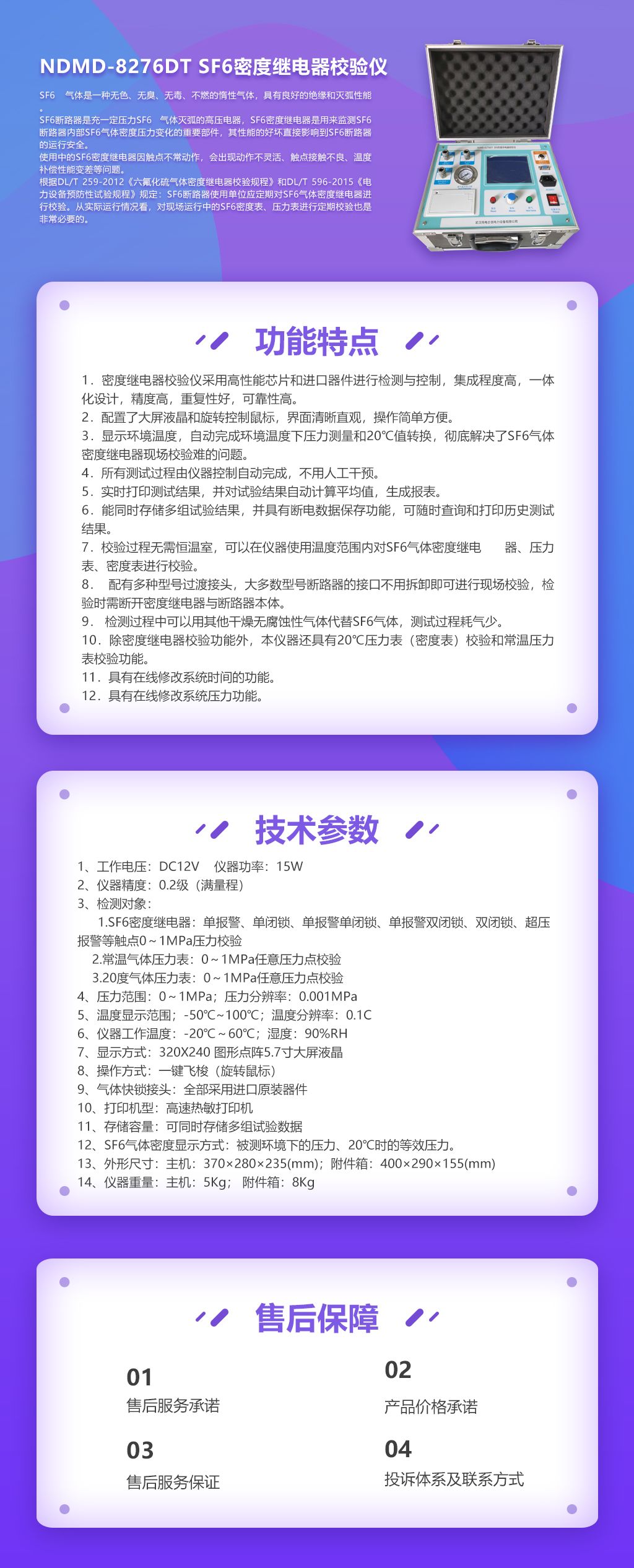 7.校验过程无需恒温室,可以在仪器使用温度范围内对SF6气体密度继电      器、压力表、密度表进行校验。