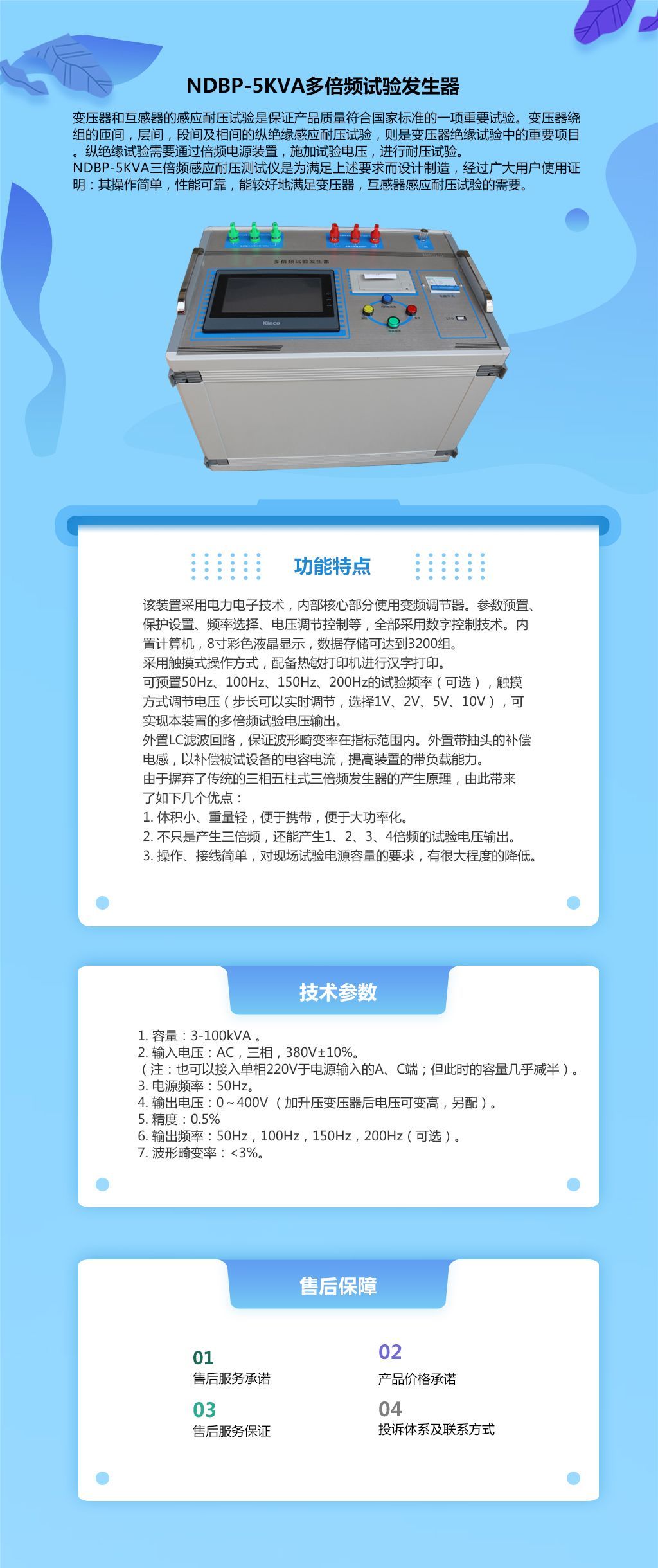 2. 不只是产生三倍频,还能产生1、2、3、4倍频的试验电压输出。