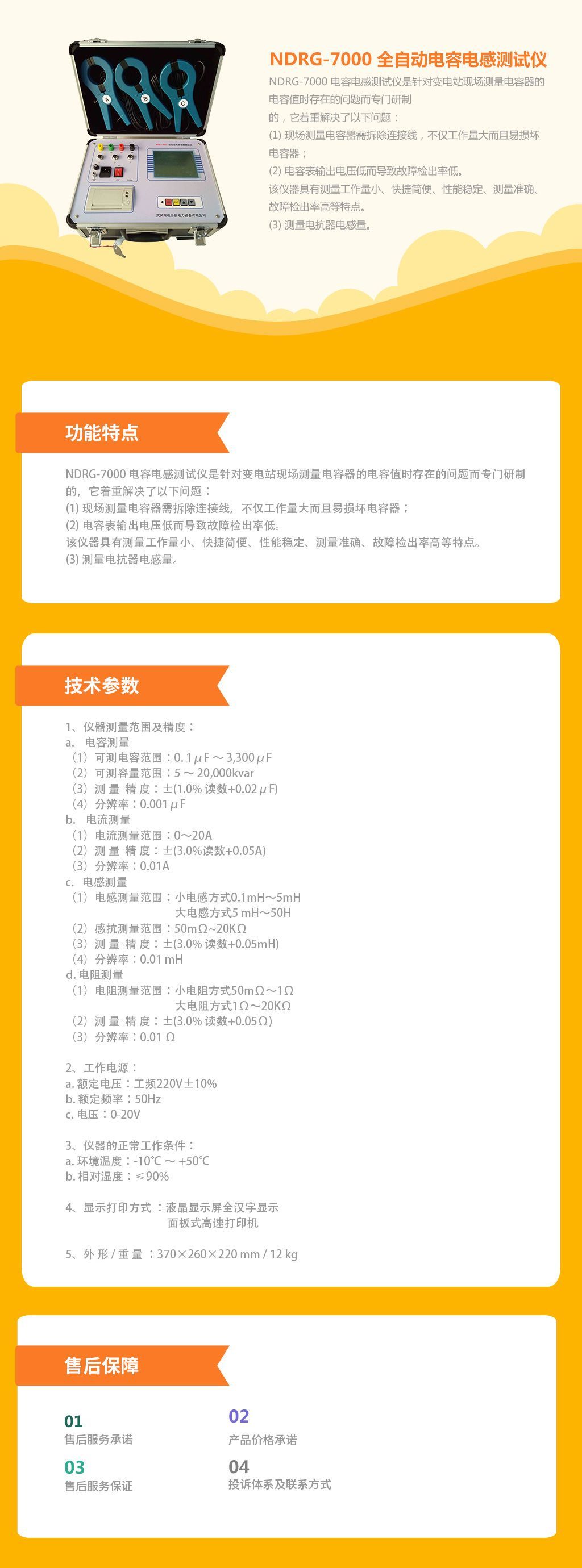 NDRG-7000 电容电感测试仪是针对变电站现场测量电容器的电容值时存在的问题而专门研制的,它着重解决了以下问题: