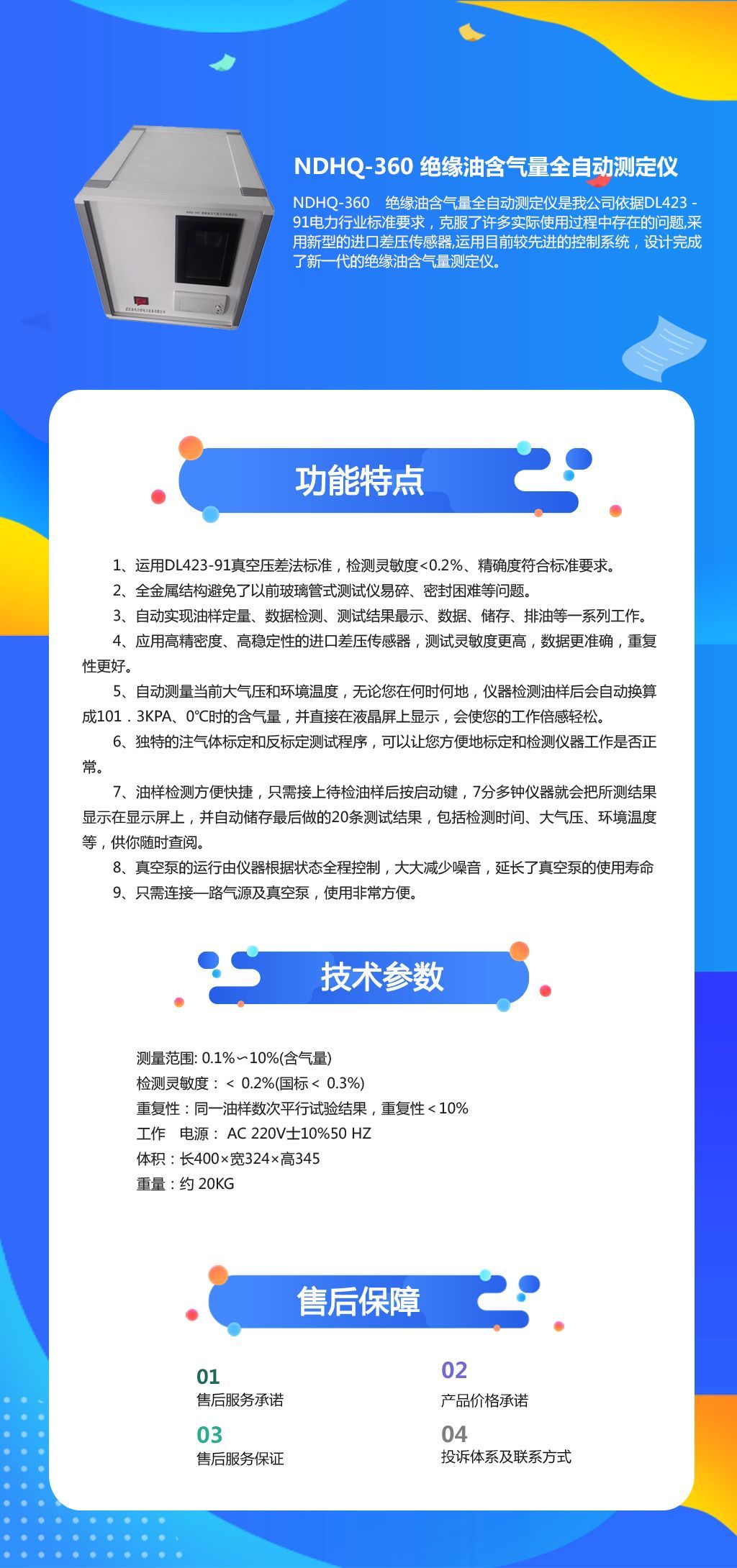 NDHQ-360 绝缘油含气量全自动测定仪是我公司依据DL423-91电力行业标准要求,克服了许多实际使用过程中存在的问题,采用新型的进口差压传感器,运用目前较先进的控制系统,设计完成了新一代的绝缘油含气量测定仪。