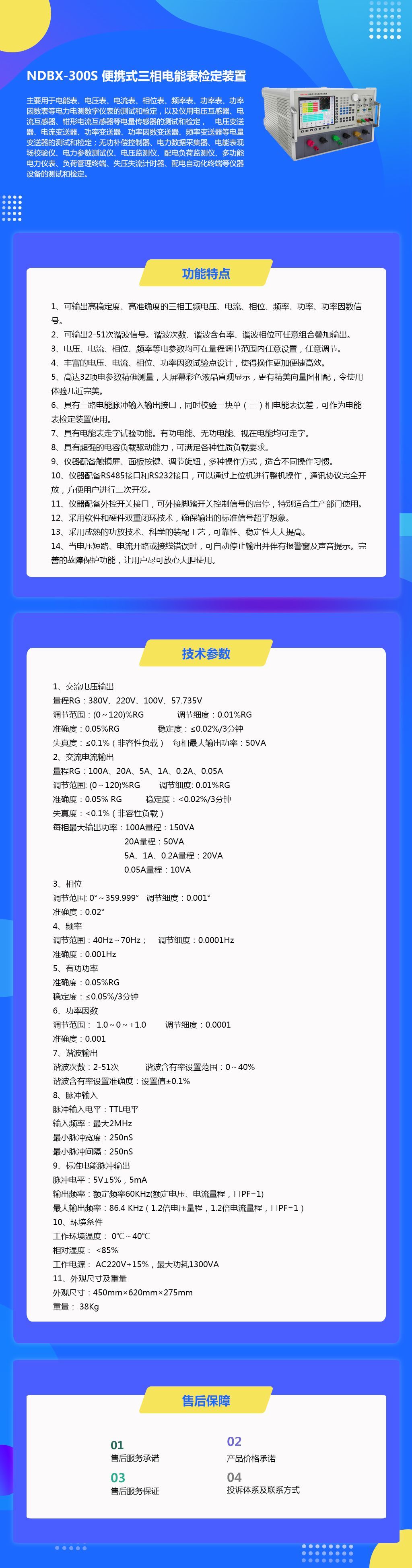 尊敬的用户,非常欢迎您选购我们的NDBX-300S便携式三相电能表检定装置产品,该产品可以产生幅度可调、相位可调、频率可调、功率稳定的三相标准工频电压、电流信号。